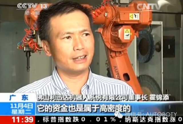 11月3-5日,中央电视台新闻频道在多个时段连续报道全国机器人行业发展状况,作为华南地区乃至国内规模最大,实力最强的机器人系统集成商佛山市利迅达机器人系统有限公司董事长霍锦添先生接收了央视记者采访。采访中,霍锦添董事长对利迅达机器人的现状、发展、在行业中的应用及所遇到的问题进行了详细阐述。