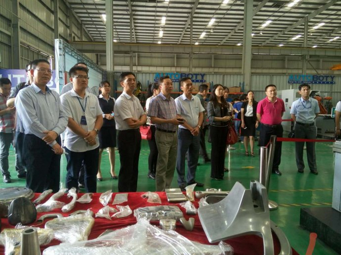 公司董事长霍锦添、人力资源总监兼总经理助理谢其峰、财务总监刘树林热情接待并陪同参观。在生产车间,采访团一行先后观看了公司首创的机器人舞狮系统、水龙头抛光打磨系统、智能化实验室、桥壳自动化打磨系统等操作演示,详细了解我司在研发设计、生产制造、系统集成、终端应用等方面的运行情况。