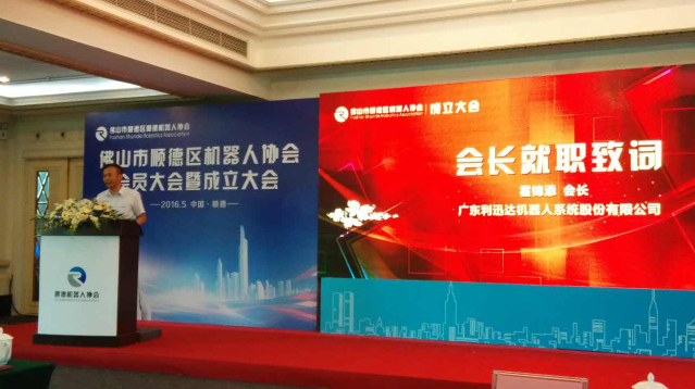 2016年5月31日,佛山市顺德区机器人协会会员大会暨成立大会在顺德华桂园举行,宣告佛山市首个机器人行业性组织正式成立。广东省机器人协会领导、佛山市顺德区经济和科技促进局领导及会员单位代表、媒体人士和社会各界共120余人出席了本次成立大会。