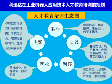 近几年,全球兴起了以智能制造为代表的新一轮产业变革,国内制造企业也纷纷引进机器人以期转型升级。然而,在对市场调研时发现,很多企业花费巨资引进机器人,但是传统的员工并不会操作,只能让设备闲置、荒废,造成不必要的损失。为此,在如今机器人教育几乎一片空白的情况下,利迅达成立机器人教育事业部,利用自身优势和资源,为企业用户乃至中国制造业的产业升级培养实操高技能人才。