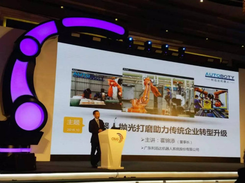 在传统制造行业,抛光打磨是最基础的一道工序。随着人口红利的消失、生产成本降低和产品质量提高的要求等因素,市场对于抛光打磨机器人的需求越发强烈。在此背景下,中国机器人产业联盟联合多元化科技创新企业3M近日在上海组织举办了“2016中国机器人研磨工业创新峰会”,作为机器人研磨的顶尖峰会,共吸引了大约300位国内外企业届代表出席。机器人抛光打磨专家——利迅达机器人受邀参加,董事长霍锦添先生发表主题演讲。