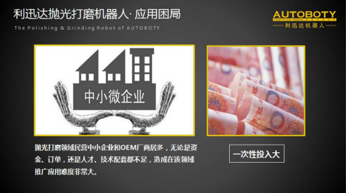 利迅达打磨抛光机器人对于提高打磨质量和产品光洁度、保证其一致性、提高生产率、改善工人劳动条件等效果显著,在厨卫、家电、汽车等领域拥有一大批客户。不过,尽管如此,在具体的运用上仍面临诸多掣肘。