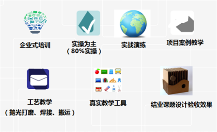 4、课程特色:小班教学,由学员进行焊接、搬运、打磨抛光课题设计,考核验收学习效果