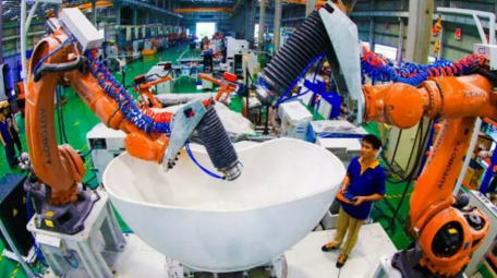 图为广东利迅达机器人公司浴缸抛光打磨系统