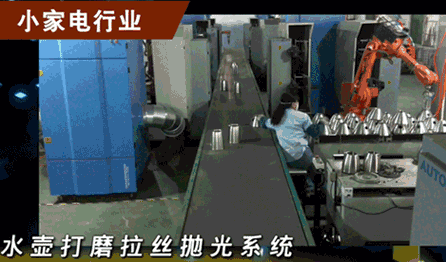 因招工困难,某企业引入了广东利迅达机器人的水壶拉丝抛光机器人,1台机器人每天可持续工作20小时,产量为800~1000个/天,合格率高达90%,可抵4个抛光工的工作量,效率提升了11倍。