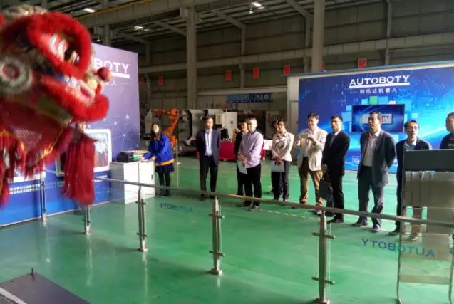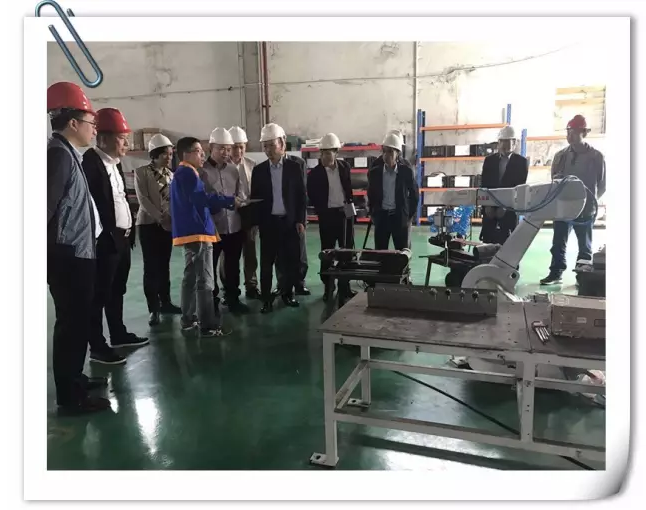 在机器人生产车间,陈基文区长一行先后观看了我司的舞狮机器人、各式应用工站,自动化产线等拳头产品,并就研发设计、生产制造、终端应用等问题与霍总进行了热切的交流。